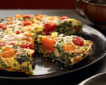 -Broil 5″ from heat for 4 minutes, or until frittata is lightly browned and the center is set. Top with cheese, cover, and let stand 1 minute to melt cheese. Cut into 4 wedges and serve each with 1 slice toast.